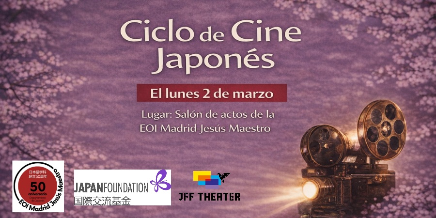 El lunes 2 de marzo de 2026 organizamos junto a la EOI Madrid Jesús Maestro un ciclo de cine japonés como parte del programa conmemorativo del 50º aniversario del Departamento de Japonés, y de la promoción de la plataforma online de cine japonés JFF Theater.