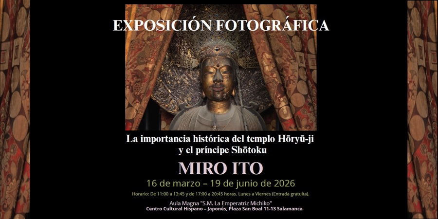 A partir del 16 de marzo se podrá disfrutar en Salamanca de la exposición “La importancia histórica del templo Hōryū-ji y el príncipe Shōtoku” de la fotógrafa Miro Ito, que se inaugura en el marco de la XXV Semana Cultural del Japón en Salamanca (16-20 marzo) organizada por el Centro Cultural Hispano Japonés (CCHJ) de Salamanca.