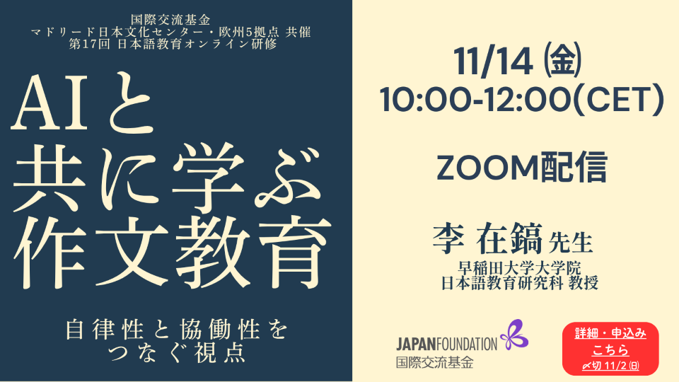 お問合せ : 国際交流基金マドリード日本文化センター  nihongo.kyoshi@jpf.go.jp